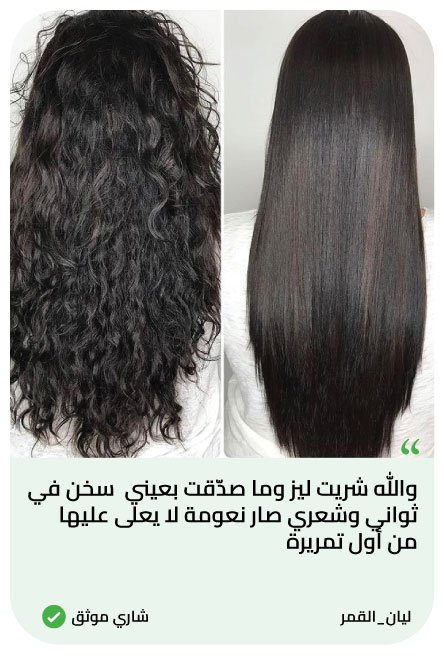 — أسماء، دبي“عمري، من يوم استخدمت ليز ما عاد احتاج الصالون! شعري صار ناعم كالأطفال وبيلمع كأنه من أفخم الإعلانات!”