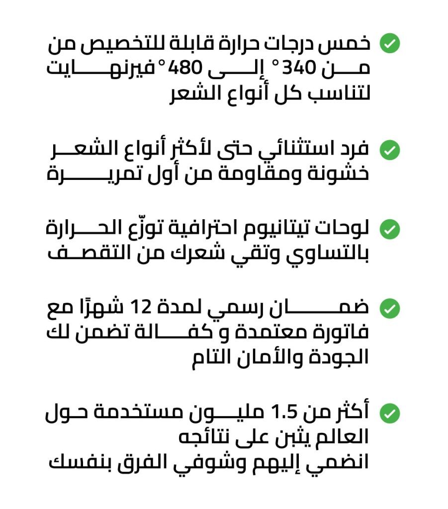 فرد مثالي لجميع أنواع الشعر من أول استخدام، لتحصلي على شعر مفرود وناعم في دقائق